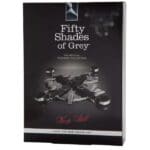 Ein schwarz-silbernes, multifunktionales Set aus Bettfesseln bestehen aus 4 abnehmbaren Gelenkmanschetten und 200 cm langen Gurten. Die kannst du für zwei Fesselungsarten verwenden. Eine weiche Augenbinde sowie Fifty Shades of Grey Aufhänger für erotische BDSM Spiele erhältst du zum Set inklusive.
